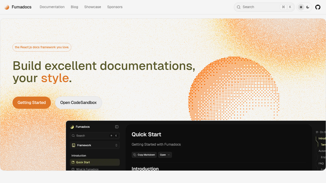 Fumadocs leverages the Next.js framework to deliver fast documentation sites backed by an active open-source community. It provides a set of flexible libraries that allow developers to build documentation interfaces using code, rather than relying on a rigid SaaS interface.