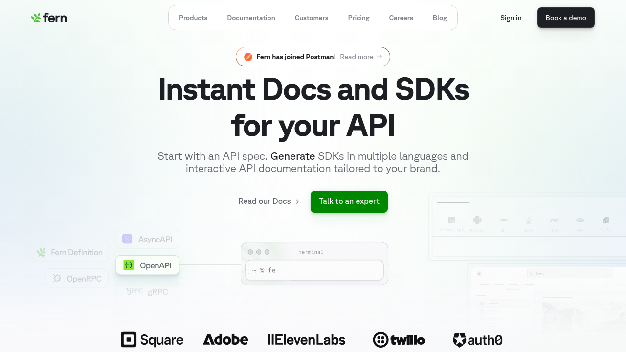 - Fern combines Vale support, SDK generation, and docs in one platform used by 150+ companies